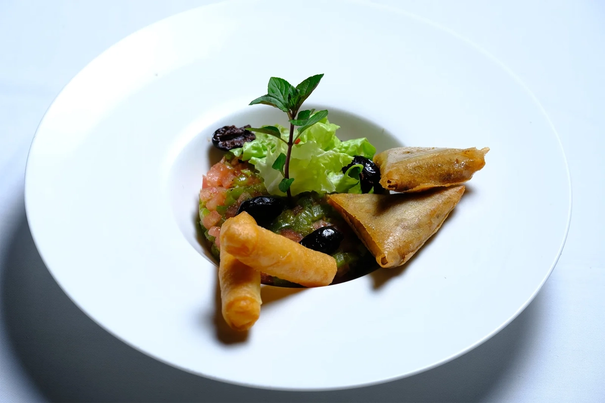 Au menu, des plats emblématiques comme des pastillas à la langouste ou au poulet, des méchouis d’agneau accompagnés de couscous parfumé, de délicieuses salades marocaines, des cocktails de briouates et des pâtisseries à base d’amandes et de miel. Une véritable invitation à savourer la richesse des saveurs marocaines, tout en découvrant des créations qui évoluent au gré des saisons et des inspirations du chef.